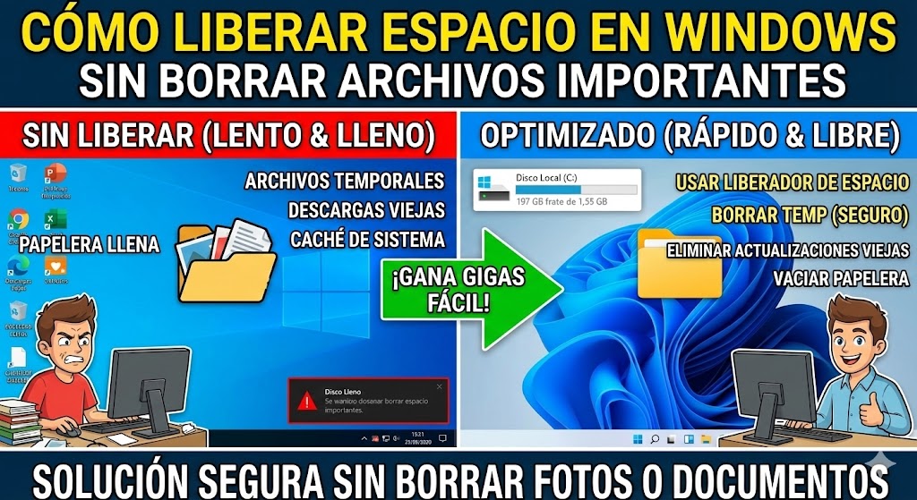 He visto ordenadores recuperar 20, 30 y hasta 50 GB de espacio simplemente haciendo una limpieza técnica adecuada, sin tener que sacrificar ni un solo documento personal. A continuación, te voy a enseñar cómo hacer esa limpieza profunda paso a paso, de forma segura y usando solo las herramientas que tu PC ya tiene. Olvídate de instalar programas extraños que prometen milagros; vamos a hacerlo manualmente y bien hecho.